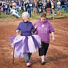Sarah Griffith of Carrollton walks down the beach at Atwood Lake toward the chilly March water wearing a purple and white tutu and sporting highlights in her hair, assisted by her daughter Sally Kaley.File