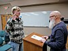 Former Carrollton Exempted Village School District treasurer Amy Spears, right, sits with her attorney, Daniel Misiewicz, during a Dec. 17 hearing in Carroll County Common Pleas Court, where a judge granted Spears judicial release and converted her prison sentence to community control.