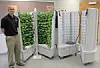 Cameron Best, Ag education teacher and FFA adviser at Buckeye Local High School, stands with a two of the three newly acquired hydroponics towers that students will use to grow vegetables and herbs for the school cafeteria and culinary program.