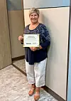 Health Commissioner Kelly Morris proudly holds Carroll County's Promising Practice Award she received at the 2025 NACCHO Conference.