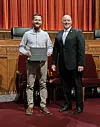 Bradley Roudebush, director of special projects for the Carroll County Municipal Court, left, is pictured with Justice Daniel R. Hawkins.