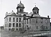 The old county courthouse in the foreground and the current courthouse in the background, photographed around the time the theft occurred.