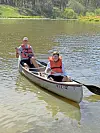 Assistant Middle School Principal Craig Rodgers and his son, Kenton Rodgers, paddle across the lake during canoeing activities at Elkhorn Valley Christian Service Camp.Submitted