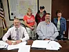 Carroll County Commissioners Donald Leggett II, left, and Chris Modranski, seated, are joined by Sandra Jones Babe, Jim Newbold and Chiyoko Weaver after the board approved a proclamation declaring October 2025 Agent Orange Awareness Month in Carroll County.