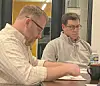 Curt Hanstine, board president, left, and Logan Putnam, board member listen at the Dec. 17 meeting of the Conotton Valley Board of Education.Jacquie Humphrey