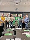 Superintendent John Zucal, left, Treasurer Gabe Tingle, Board President Curt Hanstine, and board members Rob Higgenbotham, Shawn Leggett, Nicole Bower and Logan Putnam.
