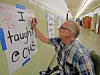 Classrooms were left largely intact for the tours, allowing alumni and former staff to see many familiar features from their school days. In some rooms, visitors located their former desks or chalkboards, now gently worn with age. Others paused in hallways to admire trophies and murals, including the well-known Warrior wall in the cafeteria, which served as a popular backdrop for photos.