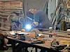 Metal worker Richard Dolin works on a project at Myers Tin Shop & Fabrication in Carrollton as sparks fly.Thomas Clapper