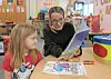 Alyssa Bonecutter, a senior early childhood education student at Jefferson County Joint Vocational School, aids kindergartener Olivia Hanlin with her reading at Hills Elementary.