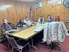 John Traxler, left, Carl Palmer, Bruce Palmer, Haylee White, Mara Malterer and Kaley Knapp discuss village business.