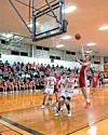Minerva's Rowen Hoffee demonstrates his touch in a Dec. 19 game against Marlington. The senior guard led his team in scoring as the Lions split games over the past week, losing to Steubenville 75-46 Dec. 23 but bouncing back in a 68-34 win over Fairless Dec. 27.