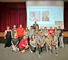 Minerva Superintendent Mark Scott, standing in back. Shown in front are Shirley Pitts, left, Roseanna Roach, Kamryn Bondoni, Tim Wolf, Mackenzie Scott, Chad Hilliard; Tania Monk, second row left, Mason Middleton, Zachary Slates, Maggie Masl, Jacob Cruz-Perez, Maddie Foutz, Julie Walker, Natalie Hinkle, Josie Vanicek, Lily Jones, Wendy Kocher.