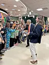 Brown Local Superintendent Danielle Hawk, front right, guides Governor Mike Dewine, left, through the school as he greets elementary students at Wellness Center ribbon-cutting ceremony.