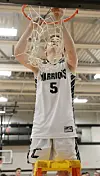 When the Warriors returned to the court, the referee instructed Gage Poole he had the run of the baseline to inbounds the ball. Brady Benner and Birong criss-crossed the court near the top of the three-point line. Poole threw the inbounds pass to Birong who dribbled up the middle of the court. As the Cambridge defense converged on him, Birong placed the ball in his right hand and drove to the basket, lifting the ball in an underhand motion over the rim and through the hoop. He fell to the floor and was mobbed by his teammates as the the referee signaled the shot was good.