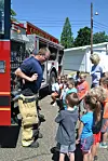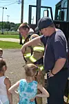 “Today, the Coshocton Fire Department is here. They bring the smoke house and let the kids spray the hose. Deputy Mox and Chili are also here.”