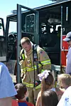 Andrew Akers, Brent Endsley and Zack Mills were the city firemen who brought the fire truck and smoke house to Safety City. Akers said he feels showing the children what firemen look like in full gear is important so they know not to be scared when the children see them. “The more they see us in gear, the less scared they will be. And they will know what to expect when we arrive at a fire.”