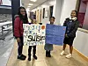Any Coshocton Christian School student could get in a recent home basketball game for free if they created a poster. Ninth grader Shepherd Wharton and his friends made extra posters for any kids who didn’t have time or resources to make their own poster. During half time, anyone could try to shoot a half court shot. Anyone who made a half court shot got a free hot dog. Eighth grader Emma Evans and fourth grader Fisher Hamilton both made a half court shot.