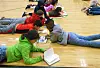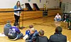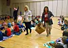 The Cat in the Hat, also known as physical education teacher Jamie Duling, read from the book “Thing One and Thing Two” to second graders in the gymnasium. “Thing One and Thing Two” are two main antagonists from “The Cat in the Hat” book. They were released from the box that the cat brought in to introduce to Conrad, Sally and the fish. The things later caused mischief by flying kites in the house which bumped the wall and also knocked everything down in their path. They represent all that restless energy we have to suppress so we don’t get in trouble.