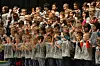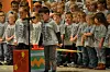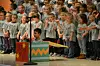 Principal Dave Skelton thanked PTO for the t-shirts and asked Milligan to come up on stage and address the students before the kindergarteners show.