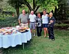 Coshocton in Bloom hosted a dinner and awards party in Montgomery Gardens at Roscoe Village on Sept. 18. Pictured are Judge Tim France, left, J.R. Shaw, Debbie Gaumer, Karen Shaw and Mary Lou McCabe.
