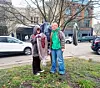 Staff and students walked down Main Street and around Court Square hanging the coats on the trees. Anyone in need of a coat could