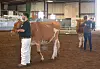 Ashlyn Tumblin, 14, won Reserve Grand Champion Ayrshire. This is her fifth year for showing cows. “I showed a cat yesterday and usually, we do horses, too, but this year we aren’t. Horses are the easiest to show, because they are tamer and more predictable. Cows are just so unpredictable. They might do really good one day and be bad the next, but I really like showing.”