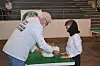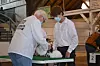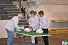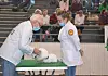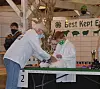 This was also Caitlin Swiney’s second year to show rabbits. She chose to show rabbits because they live in town and they are little. “They are easy to take care of.” She was showing a pen of three and said she keeps them all lined up on the table by setting them together and then keeping her hands on the outside rabbits. “Then I pet them to keep them in place and calm.”
