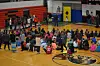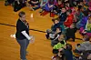 The dunk tank was set up in the high school gym. Students from third through six grade at the elementary school came over with their classes to take turns dunking the volunteers. Each ball thrown cost $1 or if students brought in a $5 bill they could just smack the button and dunk someone.