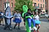 Rhonda, Whit, and Thad Booher came from Indiana to join the fun. “My cousin is local and said this was a race we could all do, so the boys skipped school yesterday and we drove five hours to be here.” Whit was dressed as a man eating alien and Thad was in a shark costume. Rhonda’s cousin, Heather Gregg, is from Caldwell. “I ran a race in Marietta this morning, skipped the awards and rushed here so we could be part of this. It’s such a great idea and super fun.”