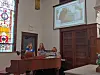 It was the Keene Memorial Society who provided flowers for the cemeteries and veteran’s graves. Similarly, monument flowers were furnished by the families of Harry Cox, Clyde Hardesty and Rodney Renfrew. Tom Dile fashioned the Battlefield Cross Display that was on the platform of the sanctuary.