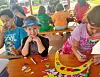 Games and activities included making sun visors and decorating them with popsicle stickers, sand art projects, they simulated ocean waves using a tarp and tossing wet sponges into a hula hoop.
