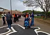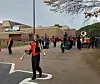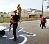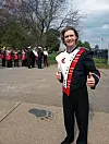 River View Junior Zoe Hardesty smiled for the camera while walking into the stadium for the competition. She has played flute since fifth grade. “I’m not nervous at all, I just hope we get a win.”