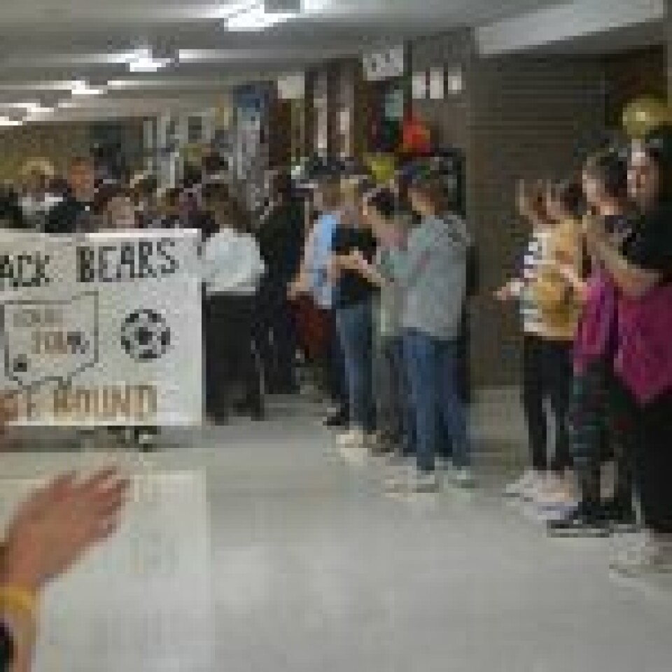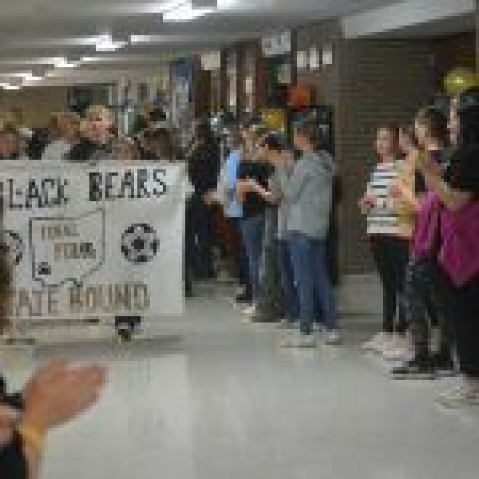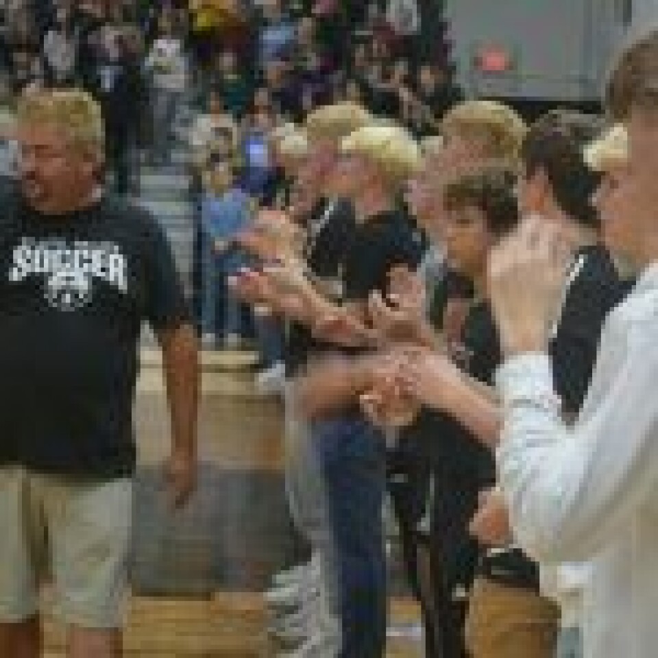 The River View High School varsity boys soccer team was honored with a pep rally this afternoon, Nov. 6, prior to heading out to compete in the OHSAA Final Four semifinal game at Dover High School’s Crater Stadium starting at 7 p.m. against Beachwood. Those not able to make the trip can watch online thanks to WTNS and Claxon Communications – https://www.youtube.com/live/TH0dpoJcWlM.