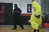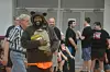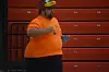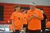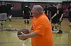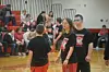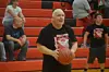 COSHOCTON – Some of the players on the Hopewell staff team decided to dress in costume for their game against the Hopewell basketball players. Pictured with a big small on his face is Eric Davis. He and the rest of staff ended up topping the basketball players 52-51.