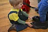 In Santa’s dressing room Colm was hard to get out of Santa’s boots and Sophia struggled to keep Santa’s pants up even when Lila tried to help her put Santa’s belt on. None of them were daring enough to see how many would fit in Santa’s pants or his jacket. Lila, however, did try his hat on, but quickly found it sliding down over her eyes.