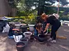 “We pull the annuals and replace them with fall flowers,” Dawn Adams said. “Mumapalooza is ear catching and if you read the word, it is eye catching too. There are over 100 mums here and over 100 pots or more. Today we are just filling the pots.”