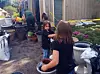 All of the information is at scarecrowtown.com and people can register from all over the county. Jandi said, “They can put scarecrows up in front of their businesses or their homes. It is a fundraiser for Clary Gardens and a great way to get the community out here to walk along the scarecrow walking trail in addition to seeing them throughout Coshocton. We have got a lot of our friends and partners putting scare crows up. The fall transformation that we are doing today is transplanting mums. We have all these empty containers and cauldrons and we always try to choose mum colors that really pop. We have lots of orange already, lots of pumpkins and a lot of these things are donated. We have so many partners that are willing to help. Yesterday our team worked to get all of these containers up here, about 100 containers that we are decorating. We are getting ready to put soil into all of these pots. So familys and kids can come out and do it with us, it is a fun activity. They can come out and they get to see the one they helped plant. The ones that do come and help get to take a pumpkin home. We have a lot going on out here. We are generally open every day from sunup to sundown.”
