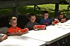 After helping with several events, including clean up, at the social, several members of the River View High School football team (and their coach) competed in the oldest class, ages 15 and over. They had to stand and be blindfolded to eat their watermelon. If it fell off the table, they were disqualified. Kadden Mobley finished his watermelon first and judges decided that Cal Shrimplin was second and Hayden Martin third.