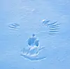 After the big snow storm, a large bird evidently landed out in the middle of Susie Shaw's front yard. His impression left the mark of an angel.