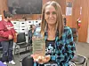 Cadiz resident Tonya Shockey holds up a sample of the water brought in by a relative. Cadiz approved a water truck for residents with discoloration still a problem within the village.JD Long