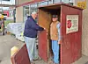 A two-man crew, Bill McGowan and Chuck Yoho, set up the booths at Sander’s Market and Ormes Hardware. Yoho is in his sixth year assembling the booths, and McGowan is in his fourth. Both men said they are happy to donate their time.