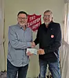 Tom Kenny, Salvation Army director, right, receives the check from Ed Spiker , CCU Coal and Construction Company representative.