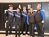 Seniors honored before the match included Jaden Harris, left, Andrew Cox, Brennan Engstrom, Hayden Bittinger pictured with Bill Bryant, coach.
