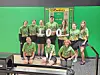Coaches Baxter and King celebrate 100 wins with the 2025-2026 Varsity Girls Bowling Team.