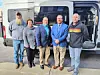Veteran Dirk Harkins, left, Commissioners Amy Norris, Paul Prevot and Dustin Corder. Ron Shumard showed off the van that treats veterans and first responders.