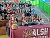 Front row, from left, Nathan, Zach, Jennifer and Elizabeth Bucklew. Back row, from left, Colin Simon, Cavaliers head coach John Fankhauser and Ty Miller. All pictured participants display the Walsh Cavaliers’ "Swords Up" sign.Lake Local Schools