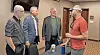 Of the six candidates on the ballot for Hartville Village Council, three were present at the recent forum: current members, from left, Tim Hayden, Chris Ramsburg, Jim Sullivan. Christian Ramsburg, right, talks with candidates.