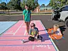 Marlington senior Quinn Cernansky, standing, and Kim Cernansky paint Quinn's parking spot.