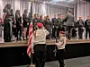 The Duke Street Choir returned to perform Find the Cost of Freedom, followed by a 10-minute video created by Sylvia McElroy, the high school’s technology integration assistant. This tradition features photos and messages collected from parents over the years. Members of the Duchess Voices then performed Traveling Soldier.