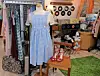 Across town at Modern Vintage, vendor Brielle Loughney of Little Thimble Thrift & Vintage LLC adds her own flair to Halloween. Among her creations: two bright orange vintage suitcases transformed with carved pumpkin faces, a baby doll head topping a Halloween tree decorated with quilted eyeballs and candy corn, and an old portable TV that glows with flashing lights. She also sells clothing that doubles as costume inspiration, from a Dorothy-style checkered dress with red shoes to glitzy outfits perfect for a Taylor Swift look.